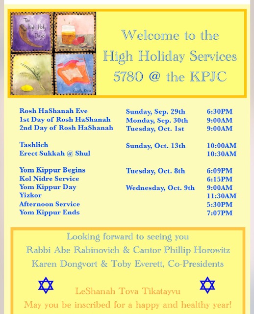 High Holy Day Schedule 5780